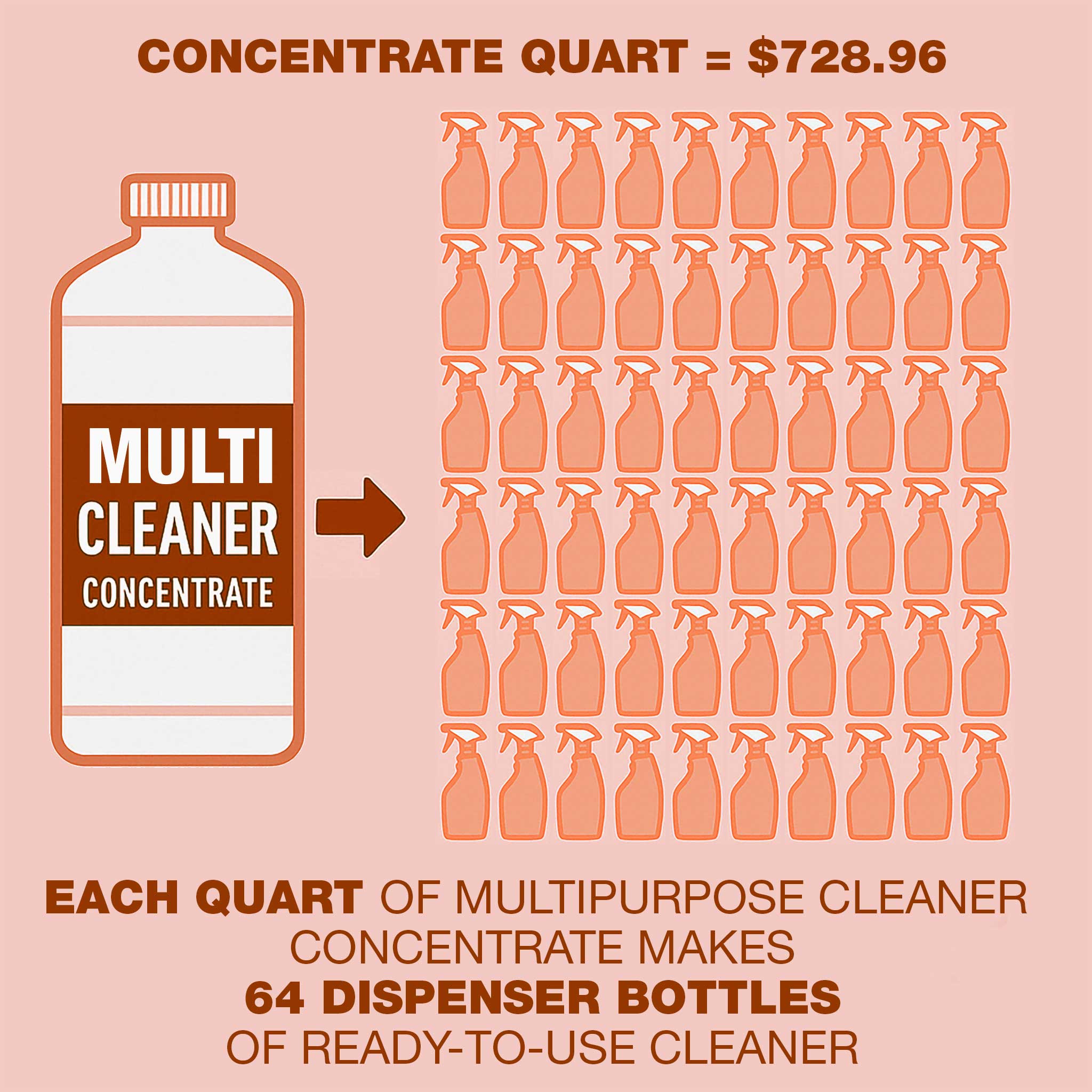 Our all-surface cleaners bulk packs ensure maximum value for commercial and home use applications. The packaging, transportation and storage requirements are thus reduced, rendering an eco-friendly alternative to single-use bottles. One concentrate bottle can make multiple gallons of ready-to-use cleaner.